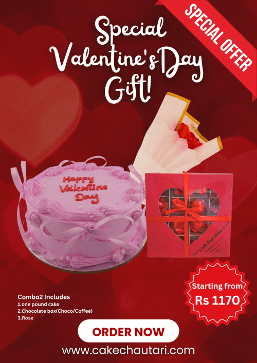 Combo Package Includes 1.One pound cake 2.Chocolate box 3.Natural Rose